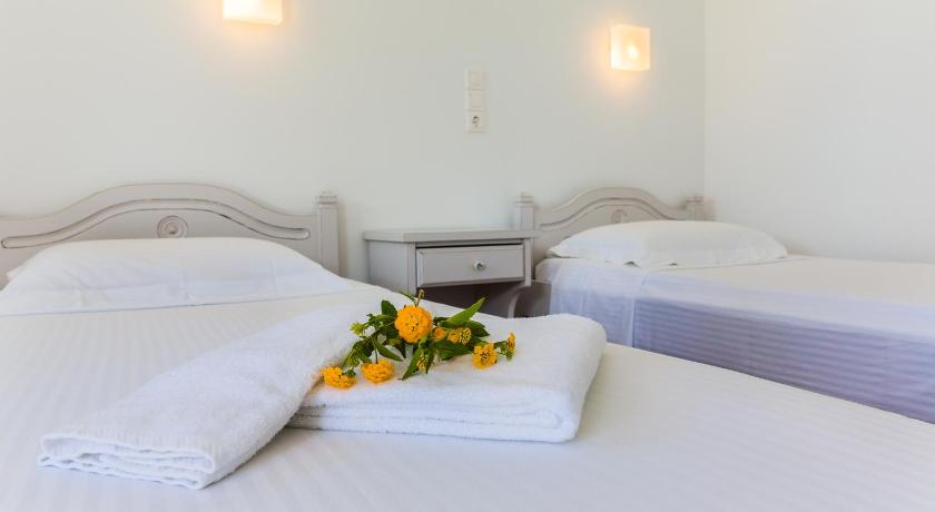 We had a wonderful stay, thanks to the incredible hospitality of Effie, Barbis, and George, who went above and beyond to make our experience special. When I initially booked, we needed to adjust our dates slightly, and Effie immediately accommodated the change. As a result, we were generously upgraded to a better room at no extra cost. We stayed in the studio, which is separate from the main hotel. The room and bathroom were spacious, clean, and very comfortable. The property itself is beautiful, with a lovely pool and a well-maintained garden—perfect for relaxing. The on-site bar is also a great spot for refreshments throughout the day. Effie, Barbis, and George were incredibly helpful during our stay. They assisted us in booking taxis to and from the port (it’s about a 20–25 minute walk, so not ideal with luggage, though pleasant for walking to nearby restaurants), and they also helped us arrange a scooter, which made getting around the island much easier. No request was too much, and their kindness truly made a difference. We would absolutely love to come back!