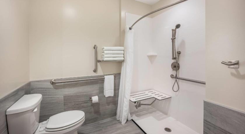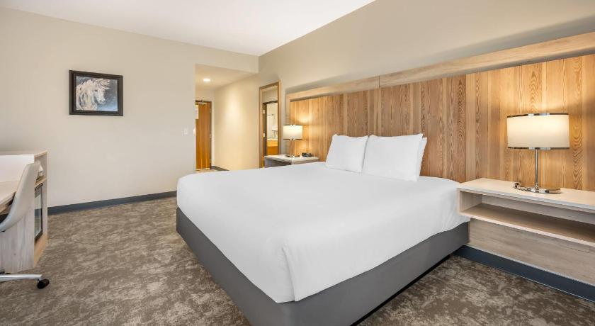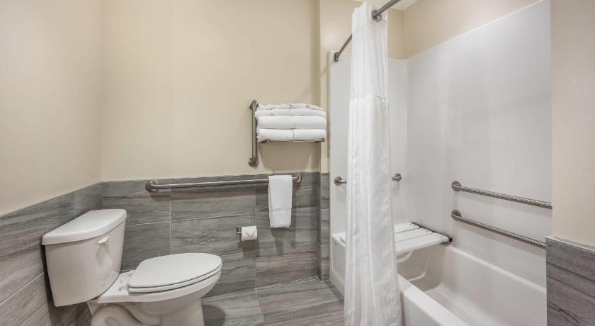 Comfortable king bed, nice bathroom and shower, good size flat screen tv, cleanliness.