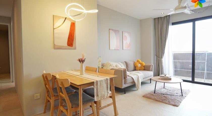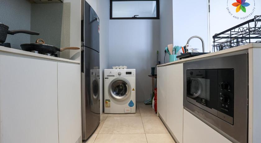 Spacious and comfortable stay for 5 people with 3 rooms and 3 bathroom. Got water filter, and if you need hot water, there was a kettle provided. Every room has its own air-cond. Nice view as well from 30th floor. Clean, organized and almost perfect facilities provided. Especially the wi-fi, because both of my phones coverage are sucks.