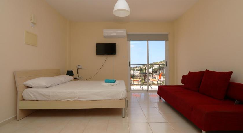 Wonderful view from the apartment terrace. Andreas the host was excellent, Very helpful and kind with accurate recommendations , And helped us out with complementary beach towels. The apartment was clean and suited our needs.