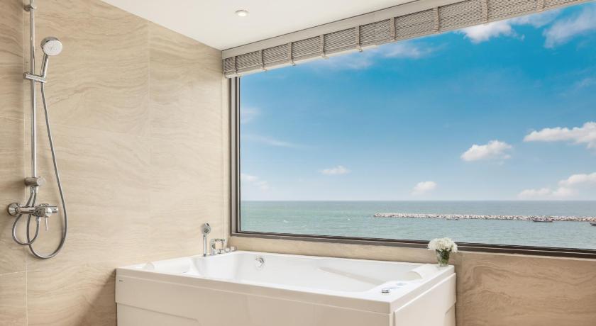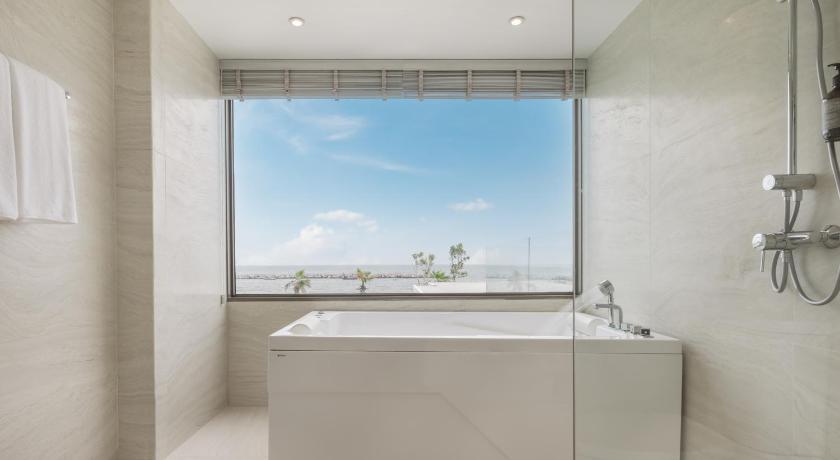 Air Conditioning, Balcony, Bath, Bath or Shower, Bathroom, Clothes rack, Coffee machine, Electric kettle, Flat-screen TV, Free toiletries, Hairdryer, Outdoor dining area, Private Pool, Safety Deposit Box, Sea view, Shower, Slippers, Soundproofing, Tea/Coffee Maker, Terrace, Toilet, Towels, TV, View