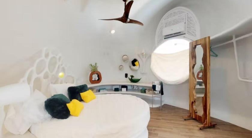 The funky design of our villa was fun and loved the shower. The kitchen was well equipped and allowed us to make some nice meals. The soundproofing between the other villas isn't great, but manageable. Ample parking and convenient stores nearby. The pool was wonderful.