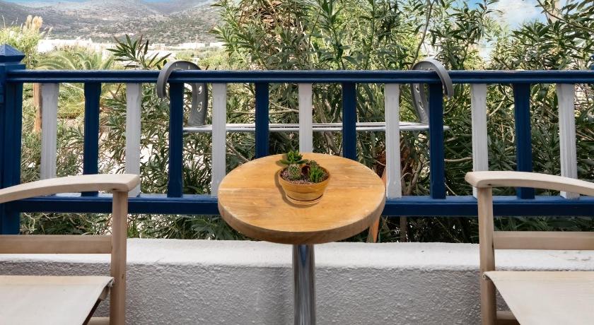 Great location on the beach. Bus stop just outside. Maria was extremely friendly and helpful. Our departure ferry was delayed but we were able to stay in our room until evening. Good breakfast in a room overlooking the ocean. Taverna also had excellent food and service