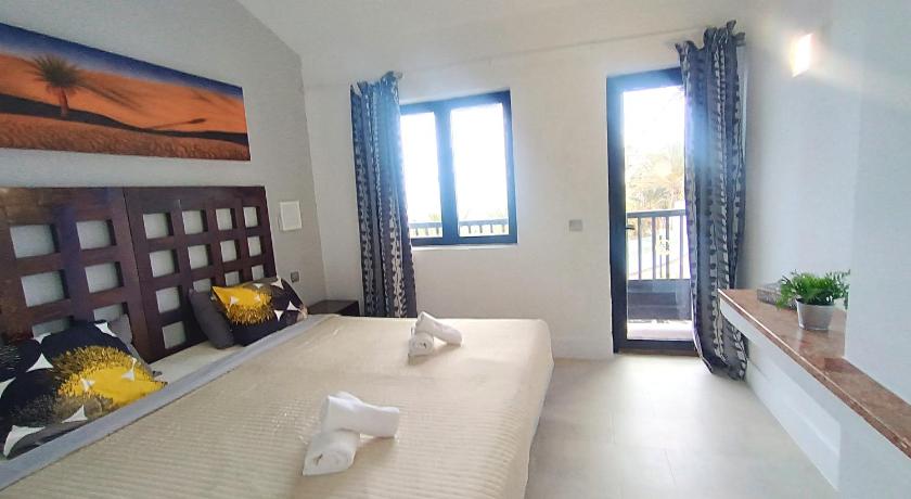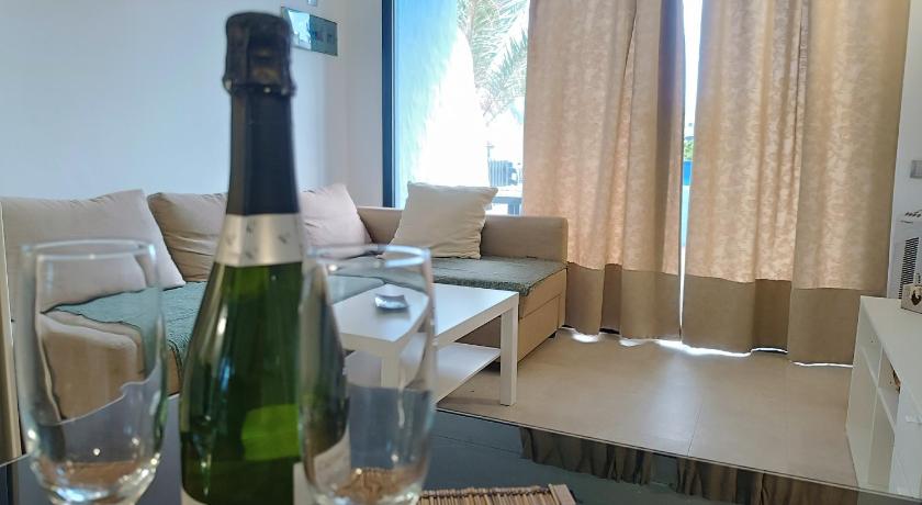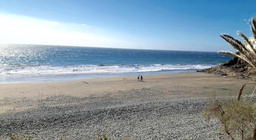 Amazing location, protected from high winds but with waves on the beach so can do a bit of body board. The residence is very pretty, nice swimming pool and terrace. Maintenance people keep things clean and tidy. It feels very private well kept secret. The flat front garden is brilliant, facing the sea, although lacks shade or a parasol during the day. The flat is very well equipped, only missing a few glasses and mugs. Bedrooms air conditioning is excellent, very quiet. The residence is very close to but not right in the main touristic areas of Maspalomas, a plus for us. You can do without a car with very frequent buses and no more than 10 euro taxi ride to Maspalomas faro area.
