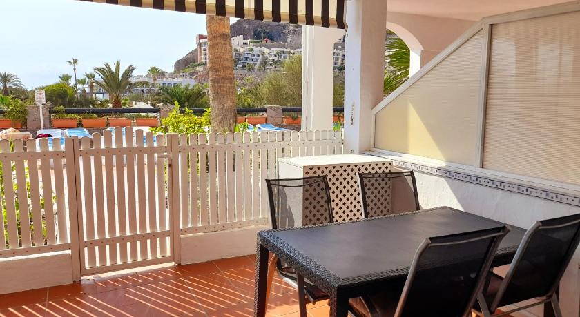 The apartment was fully equiped, from oliveoil to hairdryer. Wine, water, cookies, coffee etcetera was waiting for us on arrival. Very comfortable huge doublebed! Centro commercial around the corner with supermarket, bars and restaurants. Especially the supermarket was a big bonus! Best thing about this apartment is the location! Busstop in front and buses take you anywhere! Walking distance (15 minutes walking, coastal path) from the nicest beach of GC: Amadores! Great beachbar on playa Tauro (5 minutes by foot) Pio Pio, we loved it every sunday great live music! We rented a car but was not necessary.