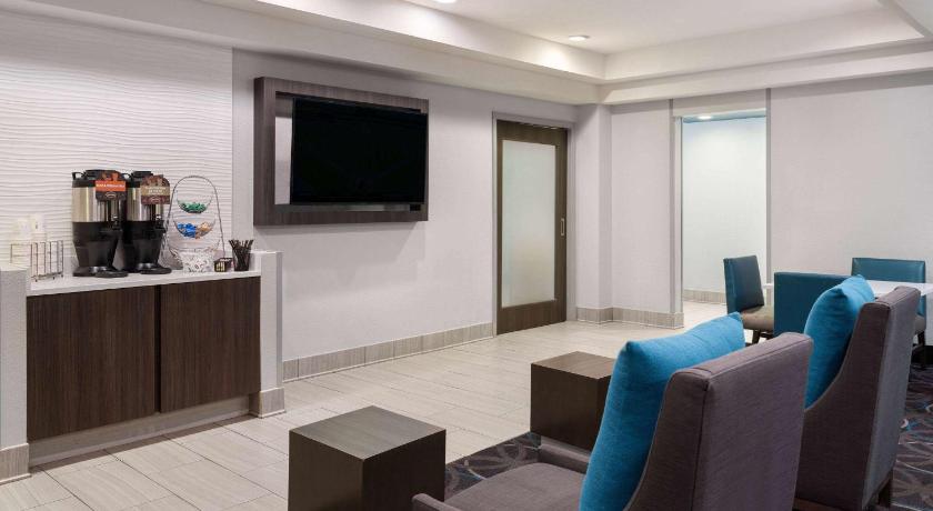 Our room was nice and large. The breakfast room was set up nicely, with four waffle stations and hot food and fresh fruit. I also liked the coffee station in the lobby. It was a nice touch. There were results within walking distance.
