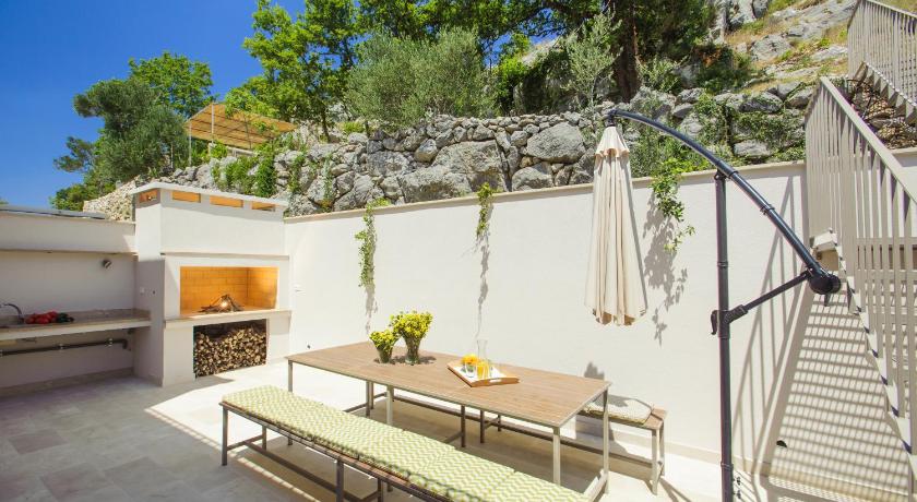 Large and modern "villa" in a tranquil mountain setting. This place is large - we were a family of only 5 but it could easily sleep 10. Needless to say, we had plenty of space. The rooms were large, lots of bathrooms. Beautiful outdoor decks and patios with views of the mountains and river valley below. Very quiet location despite being on the main road of this village. Private pool and large deck/lounge space provided a beautiful place to relax at the end of a long day of sightseeing and activities. The drive took about 30 minutes to Brela/Baska Voda/Makarska, or about 40 minutes to Omis. Lots of amazing beaches and water activites in the various towns along the coast. We also did a white water rafting adventure on the Cetina river. Since we had a car, it was easy to travel to different towns and beaches each day, despite not staying at a beachfront hotel. Lela (our property manager/host) was gracious and easy to contact for advice or help. She surprised us with a gift of wine upon check-in and brought over a bunch of ripe figs and tomatoes one day!