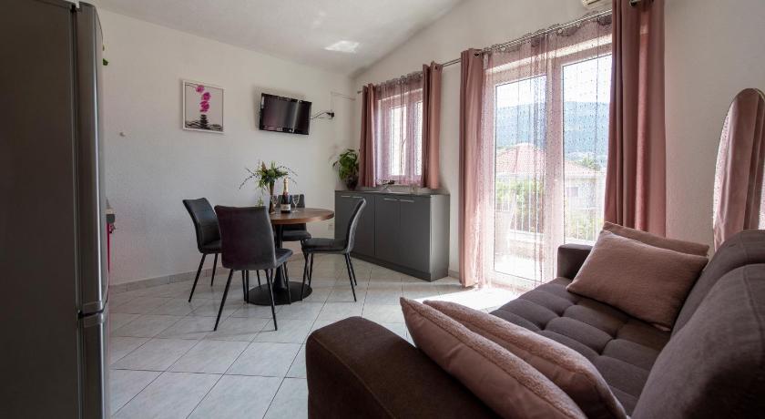 THE APARTMENT Our apartment was pristine,with lovely and large kitchen and bathroom. With all the kit you need to cook/ and clean like you would back home Great Balcony with wonderful views, a table chairs for coffee and a chat.( area was always peacfull) Pool/ and area was always cleaned in the morning...very tidy with lovely covered seating ,chairs swinging and plenty of comfortable sun loungers. The poolside kitchen, shower and toilts is perfect for familys in the morning and through out the day allowing so to prepair and cook all foods and even an indoor brick open pizza/ bread oven with large table and plentifull chairs, large tv, ice cube makers and much more. Stayed 11 nights and was perfect in Every everyway. Our host was outstanding, and always going the extra mile to help anybody. Always Happy and caring. Apartment is a stones throw to the beach / clear blue water and never seemed busy. Apartment is sited in between Split town and Omis. Did not have to traval more then 25min and was able to Zip line White water rafting Speed boating 5 island blue laggon and cave tour, And much much more. I will definatly be coming back.