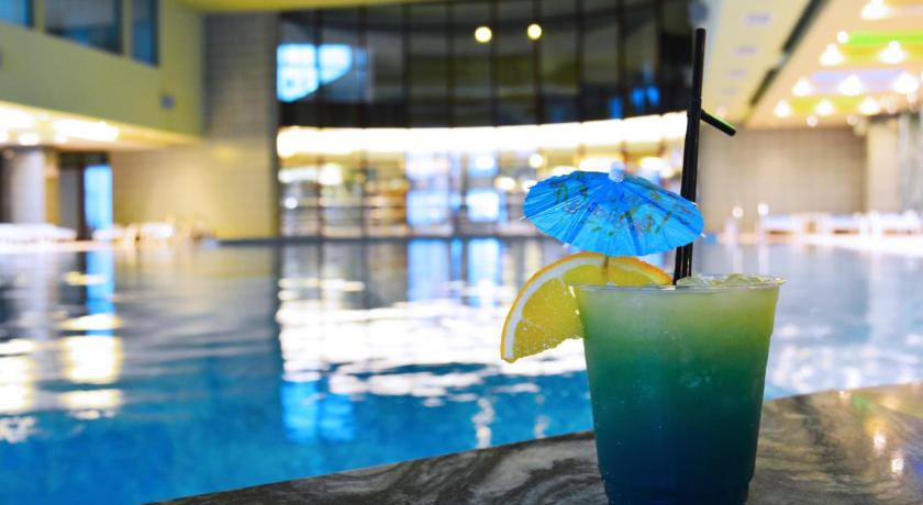 Really big pool, with warm water and a spacious spa area. The breakfast is also enjoyable, plenty of variety for every taste and diet. The room was clean, with some free amenities and water was waiting for us in the fridge.