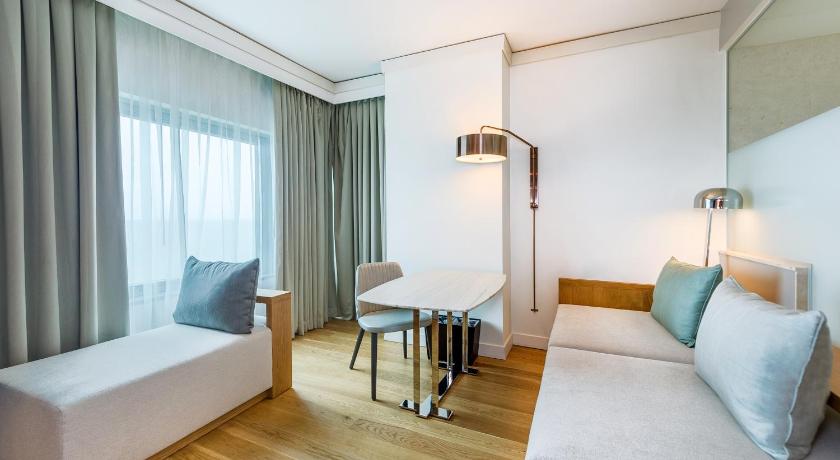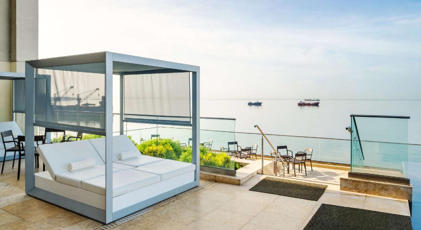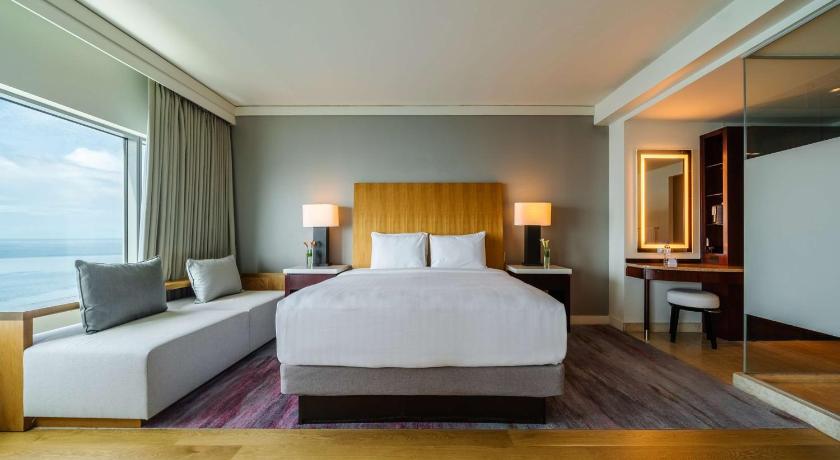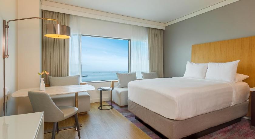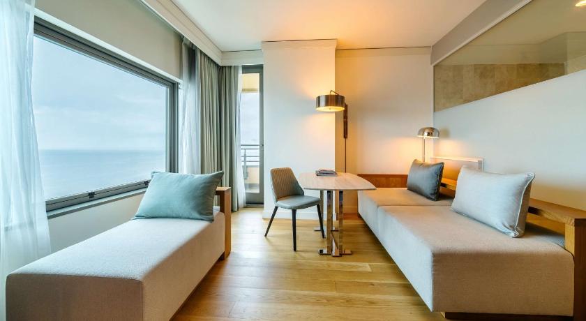 Air Conditioning, Alarm clock, Bathroom, Cable Channels, Desk, Free toiletries, Hairdryer, Ironing Facilities, Laptop safe, Minibar, Radio, Safety Deposit Box, Sea view, Seating Area, Tea/Coffee Maker, Telephone, TV, Video, Wardrobe/Closet