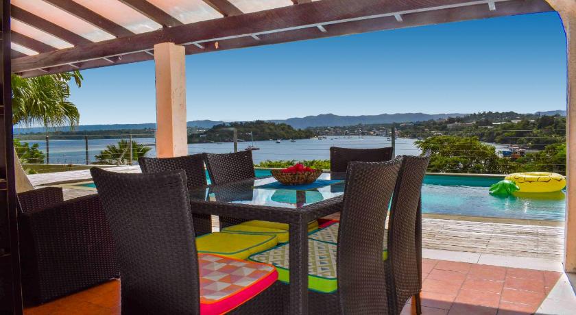 The pool, air con helped with sleeping, Peter the gardener was lovely, such a nice happy man. The size, if your a large family this is perfect. Japanese restaurant down the harbour side road was lovely 2 mins walk away & the steak house was good to staff very friendly. This house throws you into Vanuatu and it's what you make of it.