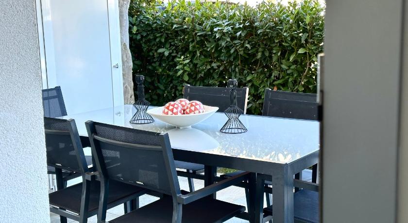 Air Conditioning, Bathroom, Bidet, Detached, Dining area, Dining table, Dishwasher, Entire unit located on ground floor, Garden view, Kitchen, Kitchenware, Linen, Outdoor dining area, Outdoor furniture, Oven, Private entrance, Refrigerator, Seating Area, Shower, Sofa, Toilet, Towels, TV, Wardrobe/Closet, Washing Machine