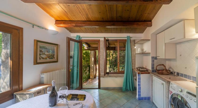 The appartments are in a largesecluded park-like area with peacocks, chickens, tortoises, cats and dogs. Nice in otherwise a busy outskirt of a holiday oriented village. Owner Olena very friendly and helpful.