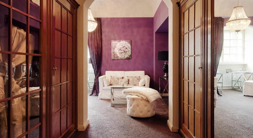 We stayed in two newly renovated rooms, one of them the penthouse suite, both with nice, modern bathrooms. Free minibar was also included which we appreciated. Breakfast with fresh eggs, strawberries, croissants and prosecco. Peaceful surroundings and calm atmosphere. Cozy with the dog in the reception. A nice country manor hotel in very peaceful surroundings.