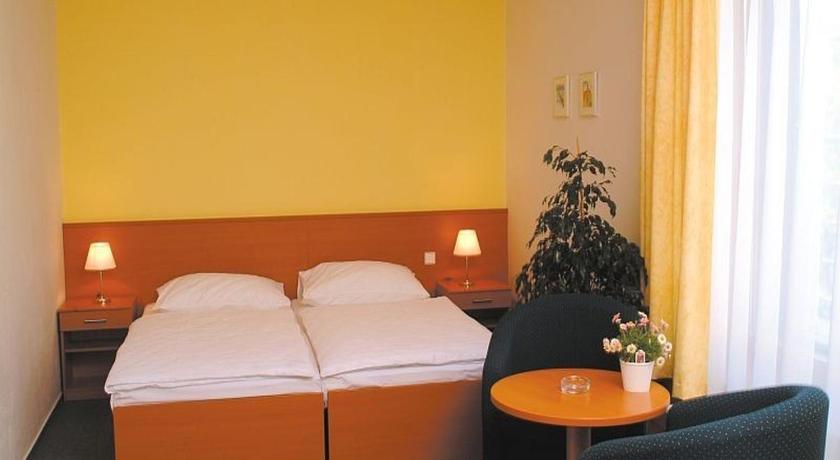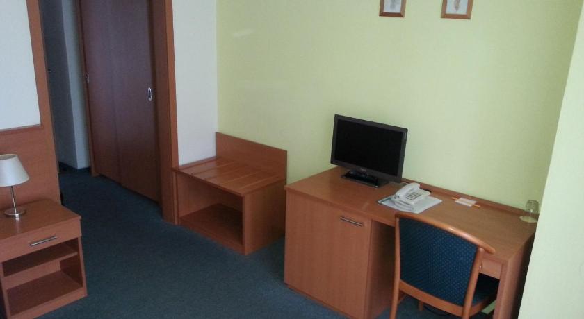 We stayed for one night after our flight. The hotel is only a 10 minute drive from the airport. The staff was very nice. The room was big and spacious - a lot of room for our huge suitcases. There is an elevator - it made some scary noises but didn't cause any actual problems. The bathroom was clean. The toiletries we got included only a tiny shampoo (not enough for one use) and a small soap bar for each guest. Better bring your own. The pillows weren't the most comfortable, and the bed is hard, I personally am ok with that. There isn't really much to do in the area except 3 restaurants. I really recommend the Grand Restaurant that is a few minutes away - one of the best czech meals we had. The breakfast was very basic. Suficiente for when you want to eat and go. Bread, fruits, ham, cheese, eggs, yogurt, tea, and coffee.
