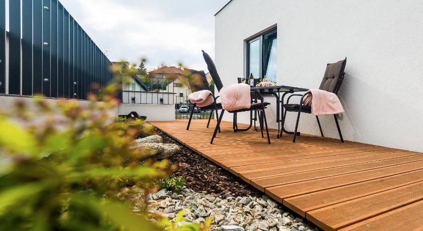 Spacious and clean rooms, comfortable beds, nice terrace, fine apartment for a family. The building is new and modern equipped, private parking (but not for large car and has cost), friendly staff, tasty breakfast. The location is near public transport, so you can easy reach the city centre by bus or subway.