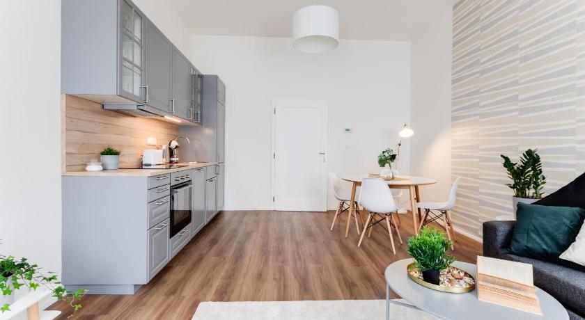 Our family of 5 (kids 11, 16 & 18) enjoyed our stay at the apartment on Stepanska. Located on the 3rd floor, the many stairs were wide, with landings between and at each floor, making the haul of 5 large suitcases more bearable - we're fit, but even we had to pause and catch our breath. (Make sure you press the light switch at each landing to avoid being left in the dark!). Also, upon first accessing the building we were asked to buzz another apartment who would open the door. You can hear the mechanism opening but the door doesn't open automatically. turning the handle and giving a slight push isn't enough - the door is heavy and requires a good heave to get it open. The apartment is splendid. Loads of space with a separate kitchen/dining/sitting area with windows that open fully out to Stepanska Street below. The two bedrooms are large, offering a comfortable large double bed in one and a double bed and a single bed in the other which was perfect for us. The bathroom offered a large shower, and toilet, and included a washing machine and there was a convenient separate second toilet. We loved the location. Just a pleasant walk down to the Old Town and squares where the Christmas Markets were still in full swing. Easy walk to the Astronomical Clock (what a site!), the Charles Bridge, even up to the Prague Castle. Loads of restaurants to choose from, but we enjoyed delicious meals at Hanoi Square and the Seafood Market and Grill conveniently located either side of the apartment building. Having 2 convenience stores that traded late and right next door was also a huge bonus.