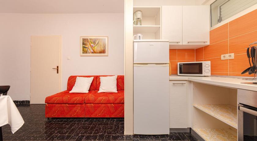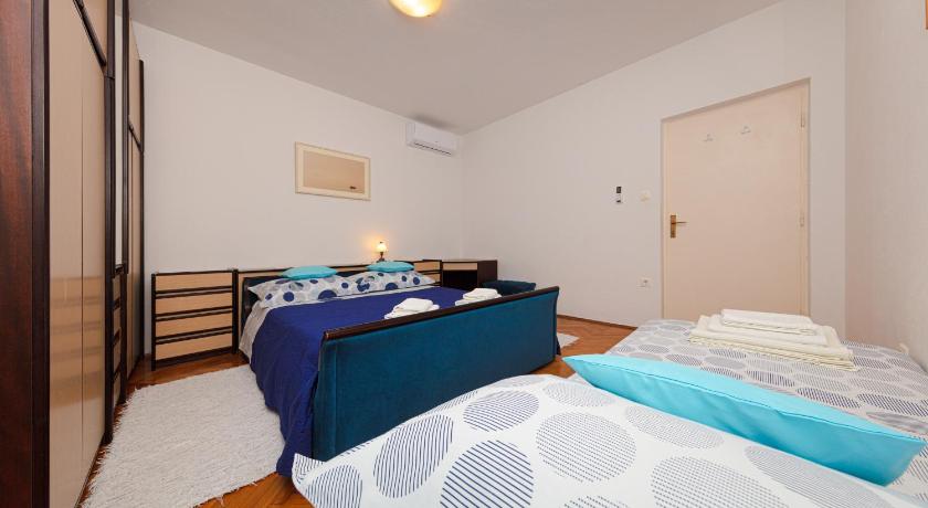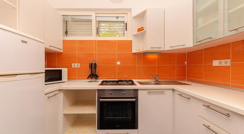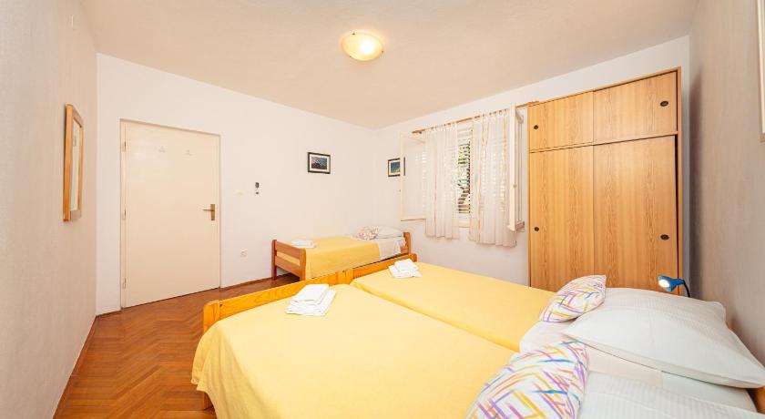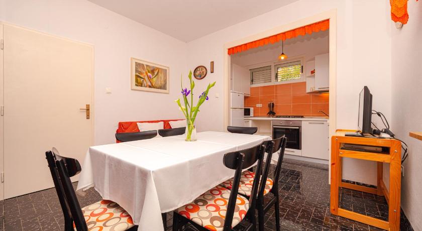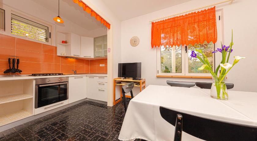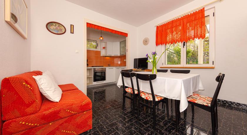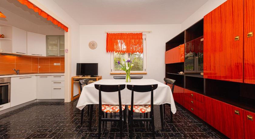 Very friendly and helpful owners, privacy in the garden, fully equipped house, possibility of outdoor grill, plenty of space, private parking (200 m from apartment), air conditioned rooms