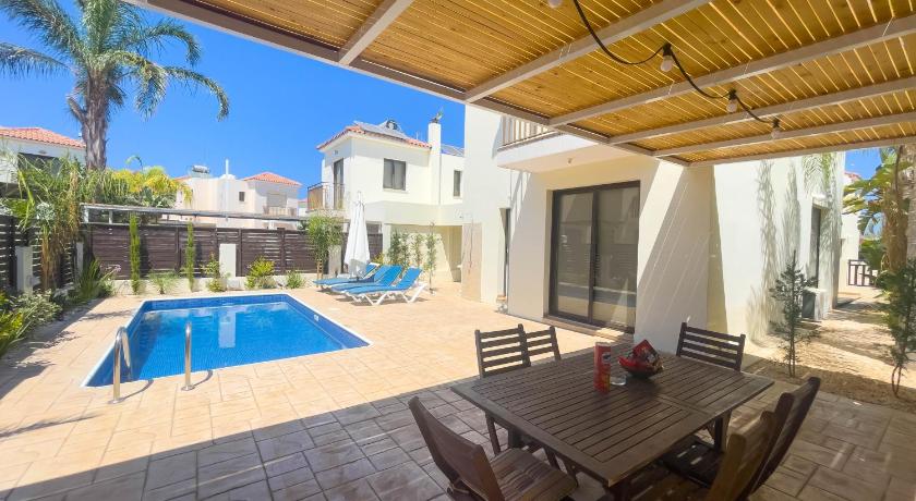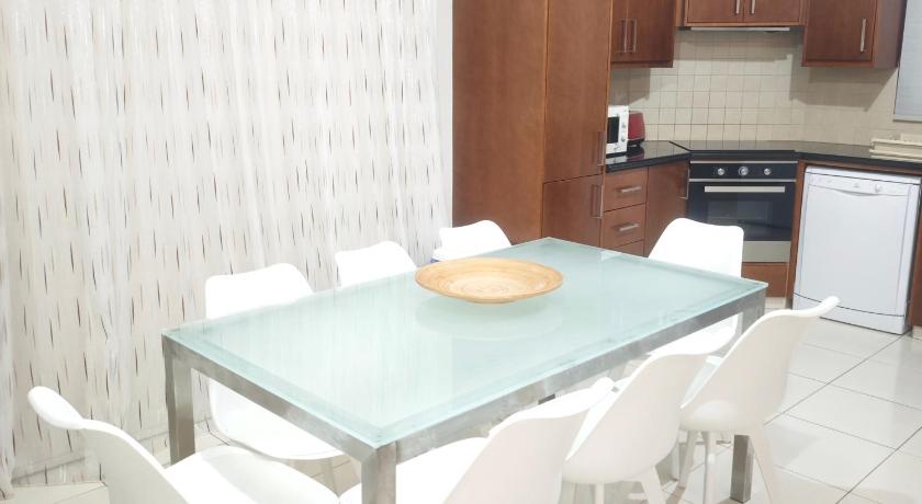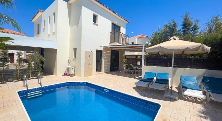 The villa offers everything you need and a little more. The garden area is well shaded, providing a nice comfort on a hot day. The villa is located just a short walk away from two lovely beaches, and the nearest one has a nice bar offering a good selection of food and drinks. A gated garage turned up to be a special benefit, as you can get your car although warm, but not roasting, when you embark for your next journey in the morning. Our host Dimitris was very helpful with all the queries about the property and local amenities, he even got the parasol in the garden replaced for a newer one midway into our stay. Visitors should be aware that the villa is located in a bigger complex of villas, most of them rented out, and you cannot reasonably expect a secluded serenity, but for us that was more or less self-evident at the time of booking.