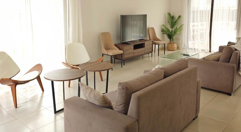 The property was exceptionally clean and suited our needs perfectly. Towels for showering and the beach were provided and the kitchen was well equipped. The pool was very clean and lots of sunbeds for our group. The AC was also excellent.