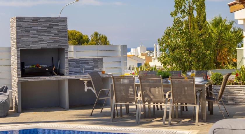 Additional Toilet, Air Conditioning, Balcony, Barbecue, Bath, Bath or Shower, Bathroom, Cable Channels, Children's high chair, Coffee machine, Detached, Dining area, Dining table, Dishwasher, Electric kettle, Flat-screen TV, Garden view, Hairdryer, Iron, Ironing Facilities, Kitchen, Kitchenware, Linen, Microwave, Outdoor dining area, Outdoor furniture, Oven, Patio, Pool view, Private entrance, Private Pool, Refrigerator, Satellite Channels, Sea view, Seating Area, Shower, Sofa, Stovetop, Tile/Marble floor, Toaster, Toilet, Towels, TV, Upper floors accessible by stairs only, View, Wardrobe/Closet, Washing Machine