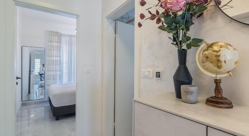 The apartment is situated just a few metres from the Golden Gate in Pula. The communication with Bartolomeo was excellent and he was very helpful and accommodating. The reserved parking space is less than a 10 minute walk and is right next to the amphitheatre. The apartment is on the second floor but the steps were easily climbed. The decor and furnishings are to a high standard and there is a small balcony for sitting out and relaxing. There are shops, bars and restaurants within a few minute's walk. We spent a day walking in the Kamenjak National Park (20-30 minute drive) which we would recommend. We would definitely stay at Penthouse Leonarda again.