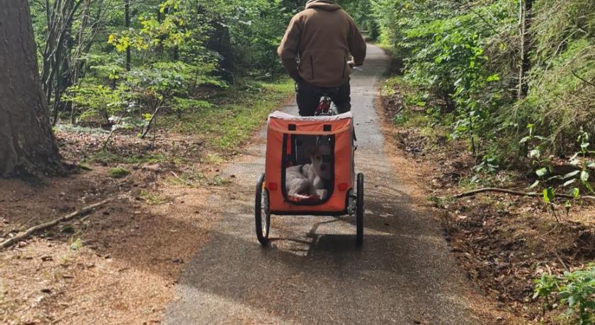 It is a little paradise created by a wonderful person, who is very very kind and pleased to help you out with any need or question. Just as you like you can enjoy your privacy very much or get in touch with the host and his lovely dog (our 2-year-old is still talking about her). The description of the place keeps every promise it makes: watching a movie sitting in the jacuzzi is so relaxing! Everything is clean and big enough to store your stuff. Also the recreation park is quiet. We could lend the two bikes to make a short trip to the forest - all in all an amazing place to spend one's holidays. Thank you, F., for the wonderful time we had with you. I am so much looking forward to meet you again!