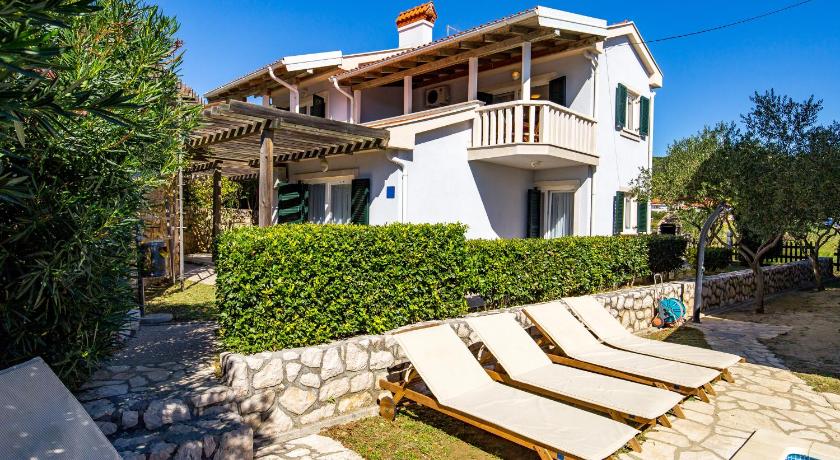 just outside Rab, situated along the coastal path. Fantastic location, lovely pool, comfortable outdoor space