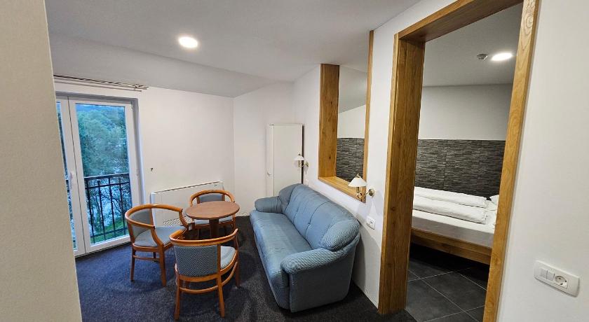 Very close to the AC so quick access to other places such as Bled, Ljubljana and more. Great breakfast with a nice river view