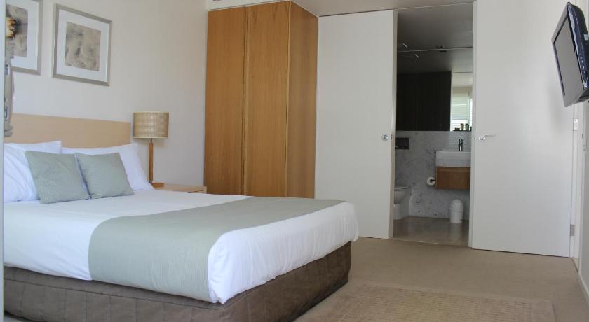 The location being close to the beach and on the main business strip made access to shops and cafes very easy. The view from the unit overlooking the park and water was lovely; and The unit itself is modern and spacious.
