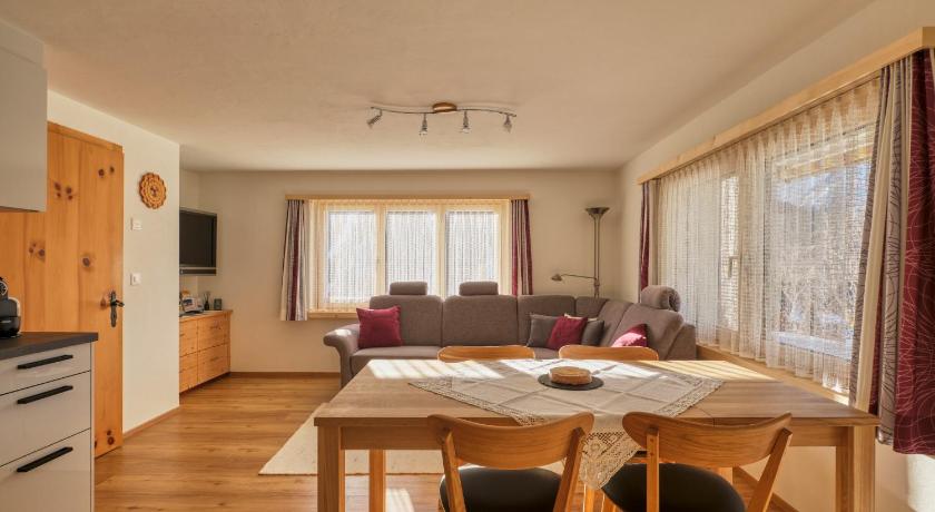 We liked the spacious and well-equipped living room/kitchen and our hostess was lovely although she spoke very little English (we got by with my bits of German). There is are two very pleasant private terraces to sit outside for morning/midday and evening and mountain views in both directions. Romasch is in a lovely historic area and the hillsides and valleys above are full of wild flowers and butterflies.