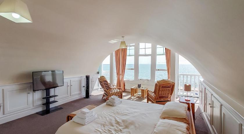 Lovely apartment right on the seafront with chairs and binoculars provided in the bedroom so that you could sit and watch the world go by. Very quiet and peaceful location.