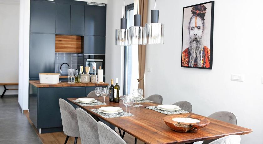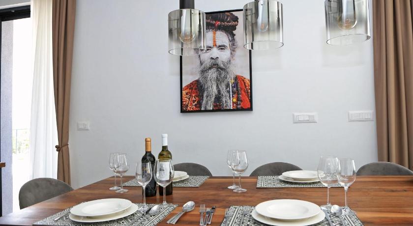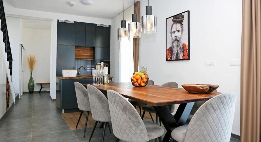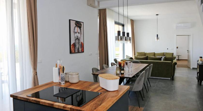 The villa itself is beautiful, perfect for even 4 couples travelling together. The quality is amazing, every room was really nice and they all had their own bathrooms. The area is very calm and quiet, so it is perfect for a relaxing holiday. The pool is great and the villa had a private beach front in just about 1-2 minutes walking distance. The private beach looked amazing, like the scene from a romantic novel :D The host was very great and kind, we really appreciated how helpful she was. Parking is available for about 3-4 cars by the house which is great. There is a built in barbecue, which we used almost every day, but the inside kitchen is very great, full of supplies as well.