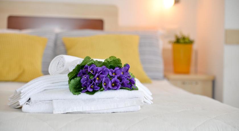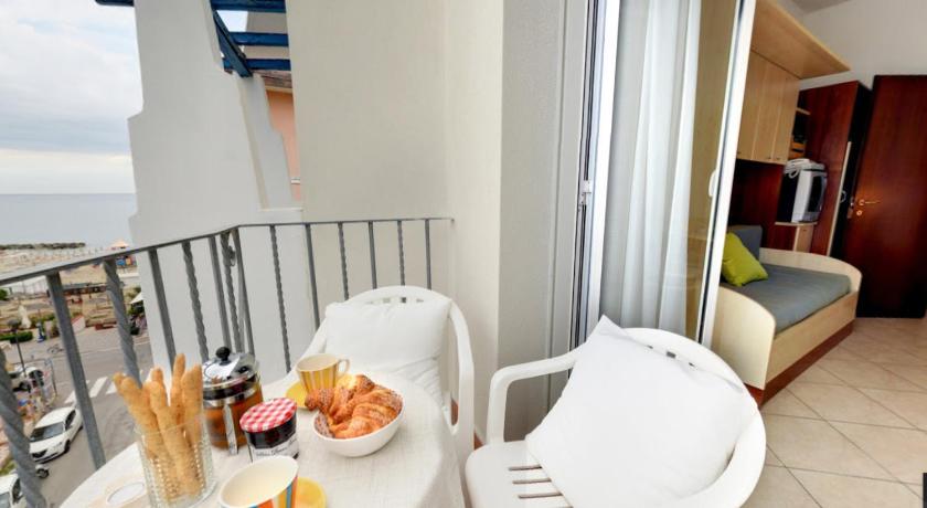 Very nice hotel, friendly staff. Our room was on the 5th floor, the balcony was overlooking the sea, there is a plastic table and 2 chairs on the balcony, very convenient. The room had everything you need and even a kitchen, small but fully equipped. 2 minutes walk to the sea, there are also many public catering establishments nearby. We definitely recommend visiting this hotel and we will definitely come again.