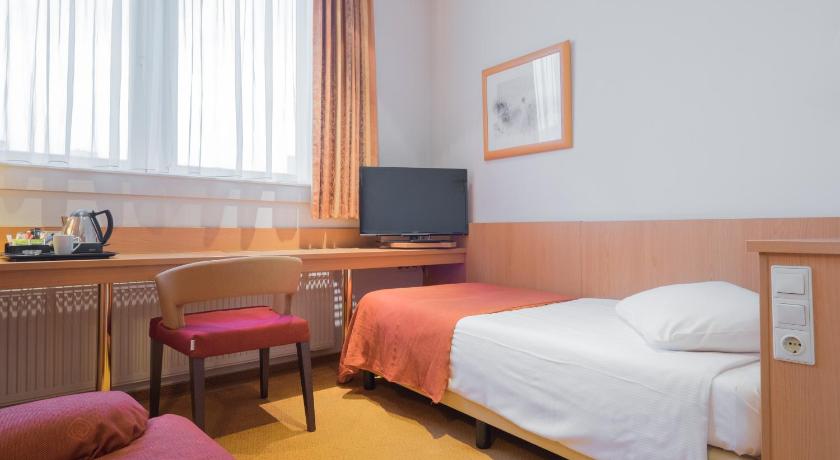 A good, clean hotel in a great location with friendly and nice staff, especially the Romanian girl! I didn’t eat there, so I can’t comment on that, but overall, it was a good experience. The location was perfect, with a smallish, cozy room and a nice balcony facing a beautiful garden. There are some restaurants and supermarkets nearby.