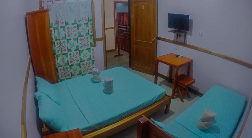 The hotel is set on a road behind the main through road so it's very quiet. The room was clean and comfortable. Breakfast was local cuisine, rice with either corned beef or sausage and fried egg served with bananas and a glass of juice. Free tea and coffee is available from reception. I chose this location as it was pretty central in Palawan and allowed me to access Port Barton and numerous other locations fairly easily.
