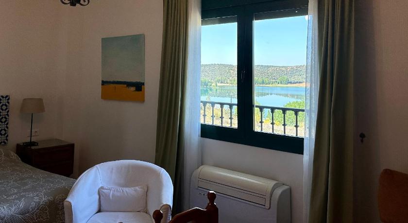 The hotel is located just above a small Spanish village and can be reached on foot from the village center in about five minutes, sometimes up a steep hill. The hotel rooms either have a lake view of a 30-hectare lake or a view to the north-east and therefore of the village. I had the less attractive view of the village. Overall, my accommodation was about 36 square meters in size and, in addition to a large enough bathroom, had a really small balcony with space for two people sitting opposite each other on bistro chairs facing the street. There was a fridge and a table with space for six people. Two armchairs completed the furnishings. I didn't think they were ideally positioned, but I couldn't find a better location either.