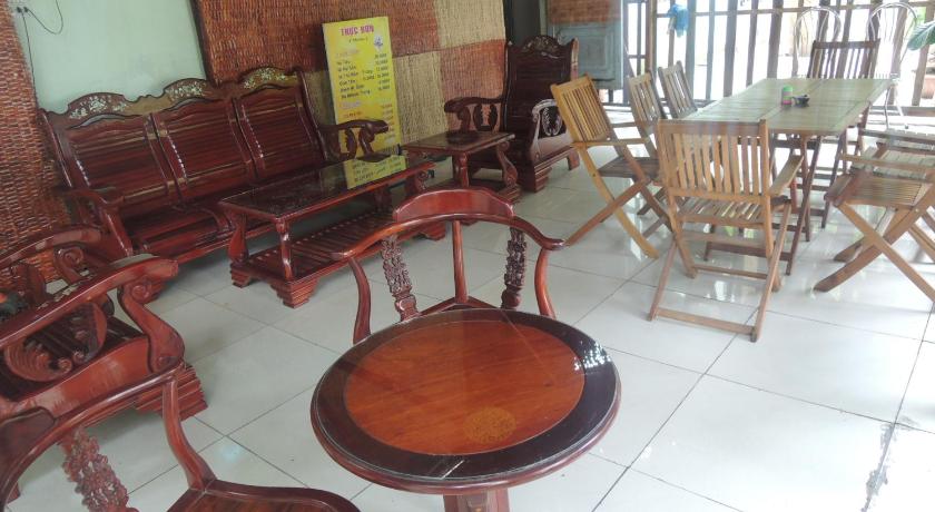 The staff is nice, patient and willing to help... They can provide a motorbike at a fair price or call a taxi if needed to get to the city and back to the bus station... But if you walk about a kilometer there is a cafes, a supermarket and even a real market... The hotel looks like an old colonial vila and has a small tropical garden... The rooms are huge and super clean and nicely decorated or equipped (AC, fridge, english speaking TV chanels). There is also a nice and good family restaurant around the corner for your breakfast or eventual dinner... 😄