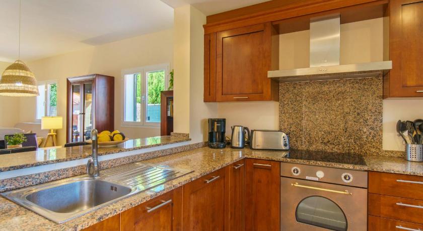Air Conditioning, Balcony, Barbecue, Bath, Bathroom, Coffee machine, Detached, Dining area, Dining table, Dishwasher, Garden view, Hairdryer, Heating, Ironing Facilities, Kitchen, Kitchenware, Microwave, Oven, Pool view, Private Pool, Refrigerator, Satellite Channels, Shower, Stovetop, Terrace, Toilet, TV, Upper floors accessible by stairs only, Washing Machine