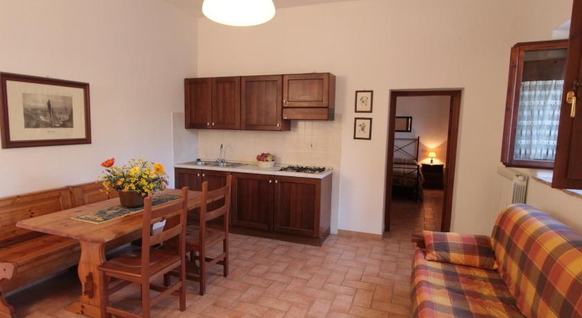 Spacious apartment, laundry facilities available, crystal clear swimming pool, peaceful setting. Lovely view of San Gimignano and the Tuscan countryside. Friendly and helpful staff.