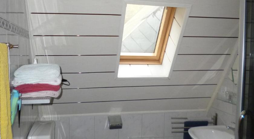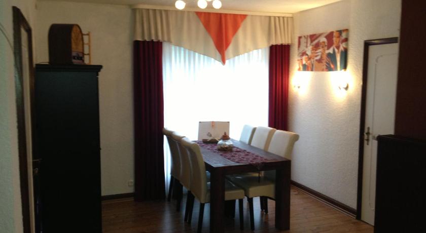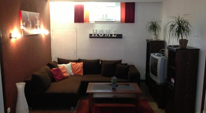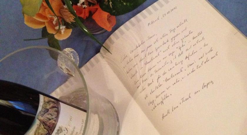We checked in at the cosy little restaurant...ate there too, quite good. Had a small beer garden too which let to a larger area where the big rabbits lived! Great attraction for all. Then we drove to the actual room, upstairs above an old movie house. Parking was free across the street and near the train station. We had a small balcony on the side of the building from which in one direction you could see the mountains and the other direction the Rhein River. Room was quite large and recently renovated. The beautifully tiled bathroom was stunning, excellent craftsmanship. The awning on the balcony had seen better days. It was a short walk back to the restaurant (where we checked in) along the Rhein River where you could also take the car/passenger ferry across the river to St Goar for just a few Euros. Beautiful area and close to local grocery stores. Nice family run operation. Be sure to write in the guest book on the coffee table in your room. Full kitchen, stove, frig, glasses, cups, silverware, etc. The works.