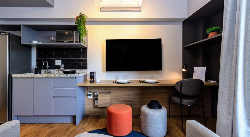 Air Conditioning, Balcony, Bathroom, Bidet, City view, Coffee machine, Dining area, Flat-screen TV, Hairdryer, Kitchenette, Kitchenware, Linen, Microwave, Refrigerator, Seating Area, Shower, Sofa, Stovetop, Toilet, Towels, Wardrobe/Closet
