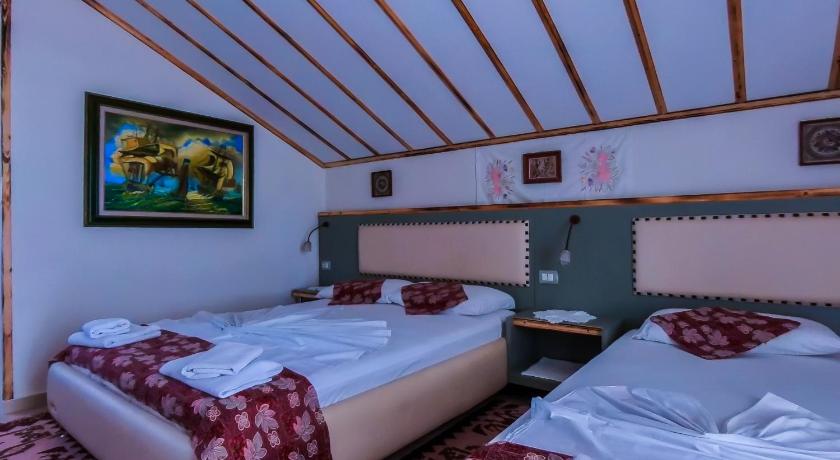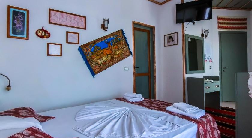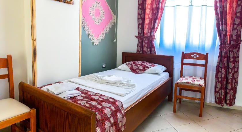 Location - near to the port of Saranda, near to the beach. Prices. Near to the shops, restaurants, bars, etc. You can take also bus to Ksamil (30 min for 1.500 lekes = 1.50 €). Everywhere you can pay by €. Breakfast and dinners were served just in albanian special cousine style which means you were served only their specialities. But I must say it was a good experience. Some of them were really delicious. Also a room was decorated in albanian style.