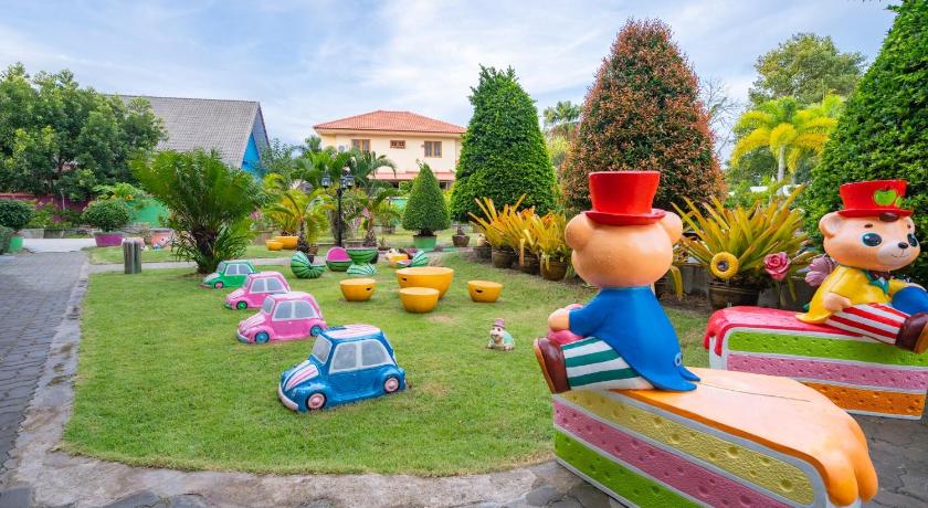 The place was excellent, staff helpful and the scenery, the pool and the cartoon characters and teddy bears were curious and cute......really enjoyed staying here. The food was also delicious.