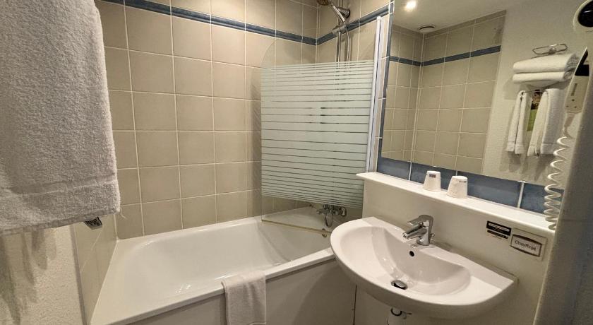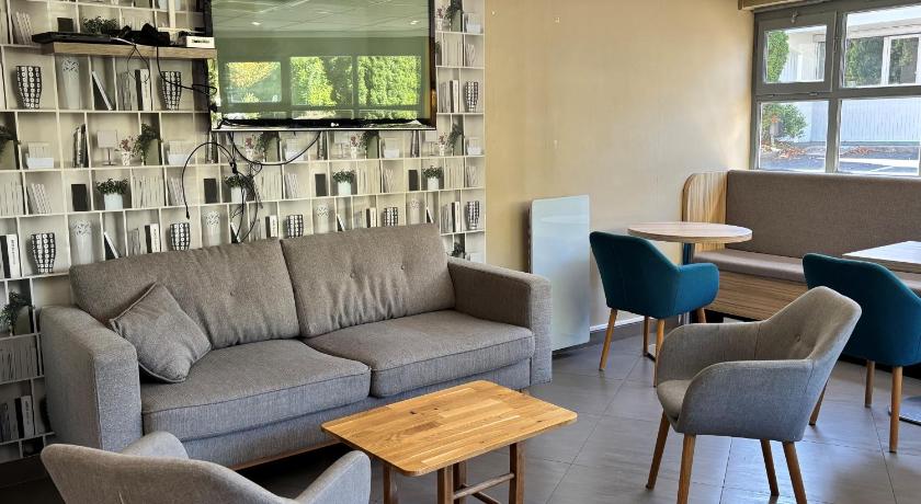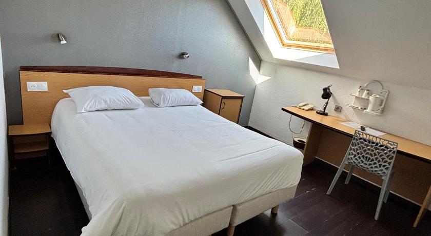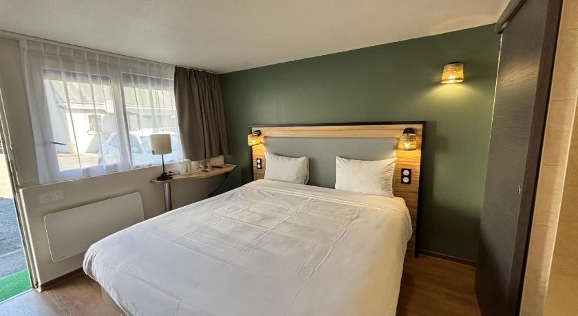 The greeting on arrival by a young lady called Nari was very pleasant, she was extremely helpful and spoke very good English. In the restaurant, we were greeted by a lovely young lady called Dahlia who also spoke excellent English which helped us navigate the menu, as neither of us could read the French menu. The room was very clean and had great facilities for a stopover on route to Caen from the Dordogne A very spacious car park on site