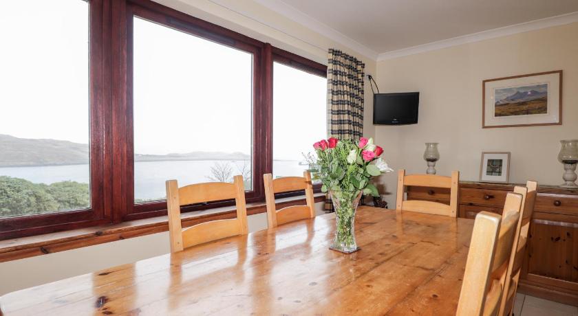 Lots of room, great views front and back but especially from the front overlooking the sea, central location for visiting all of Skye, very friendly host, separate lounge to relax in.