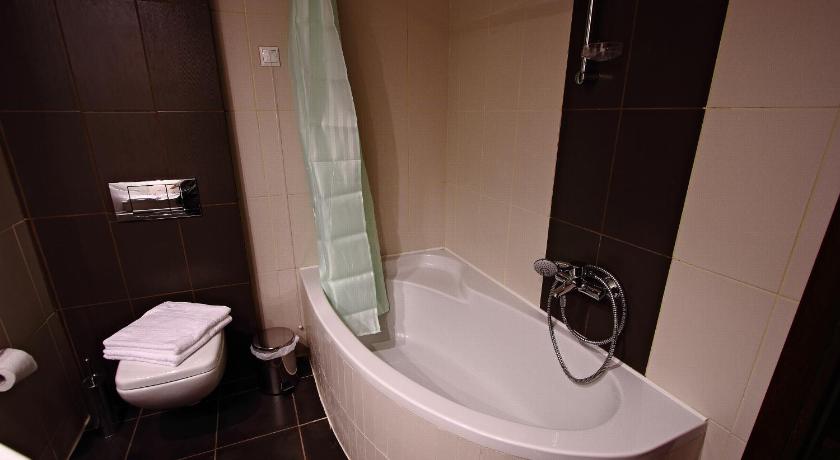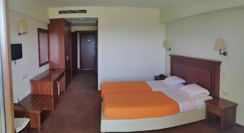 very good hotel for transit Grece-Bulgaria-Romania huge rooms, huge bathrooms (bubble bath tube - AND shower), huge balcony air conditioning, small fridge, wifi, TV all amenities very good breakfast (and early) large and nice swimming pool huge parking taverna at 10 min walk