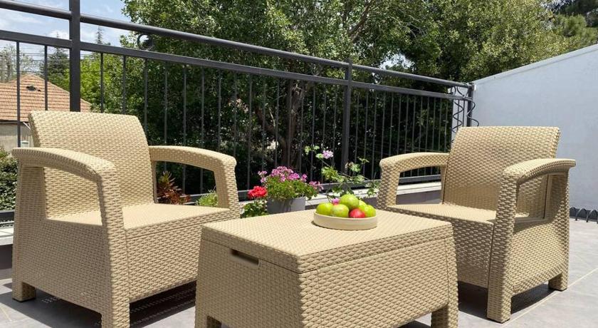 Air Conditioning, Balcony, Barbecue, Bath or Shower, Bathroom, Children's high chair, Cleaning products, Clothes rack, Coffee machine, Desk, Dining area, Dining table, Dressing Room, Electric kettle, Flat-screen TV, Free toiletries, Garden view, Heating, Kitchen, Kitchenware, Linen, Microwave, Outdoor furniture, Patio, Private entrance, Private flat in building, Radio, Refrigerator, Seating Area, Shower, Sofa, Stovetop, Tea/Coffee Maker, Tile/Marble floor, Toilet, Towels, TV, Upper floors accessible by stairs only, View, Wardrobe/Closet