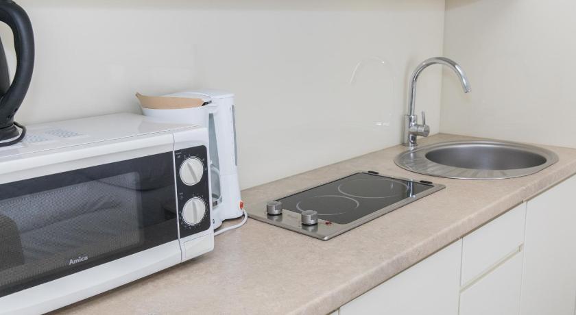 Balcony, Bathroom, Clothes rack, Coffee machine, Dining table, Electric kettle, Flat-screen TV, Heating, Kitchenette, Kitchenware, Microwave, Private flat in building, Refrigerator, Shower, Toilet