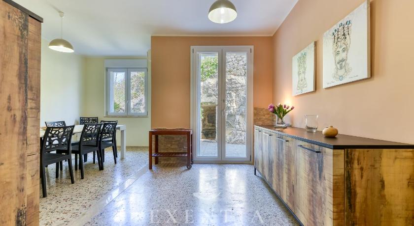 We enjoyed very much our stay at Villa a Sud, the house is very nice and well maintained/updated. There are 6 bedrooms out of which 2 have en-suite bathrooms and for the rest of 4 bedrooms are 3 additional full bathrooms. [ Two bedrooms and two bathrooms on the ground floor and 4 bedrooms, one large living room which opens into a large terrace and 3 bathrooms on the first floor]. There's also a very well equipped kitchen that also opens to a small terrace in the back of the house, with a table with umbrella and a grill/barbeque device. The garden is very nice and well maintained. There are about 3 - 4 parking spaces in front of the house, near the entrance in the house. Lots of spaces to stay in the sun or protected by the sun in the garden and terraces. A quiet area, with a spectacular view from the first level over the sea and Siracusa old city. There are some restaurants nearby and a harbour for small boats (and fresh fish and sea food providers). But you definitely need a car for accessing the nearest grocery store or bakery or anything else (beaches with sand etc). It's a 15-20 minutes drive to Siracusa harbour and the old part of the city (Ortigia) which is wonderful. The hosts are very nice and helpful, they were very responsive to all our questions or request, and they welcome us with lots of fresh water and some prosecco in the fridge, absolutely useful for a very warm afternoon when we arrived. I definitely recommend their house for a (long) stay as a base to see all the wonders of Eastern and Southern Parts of Sicily.